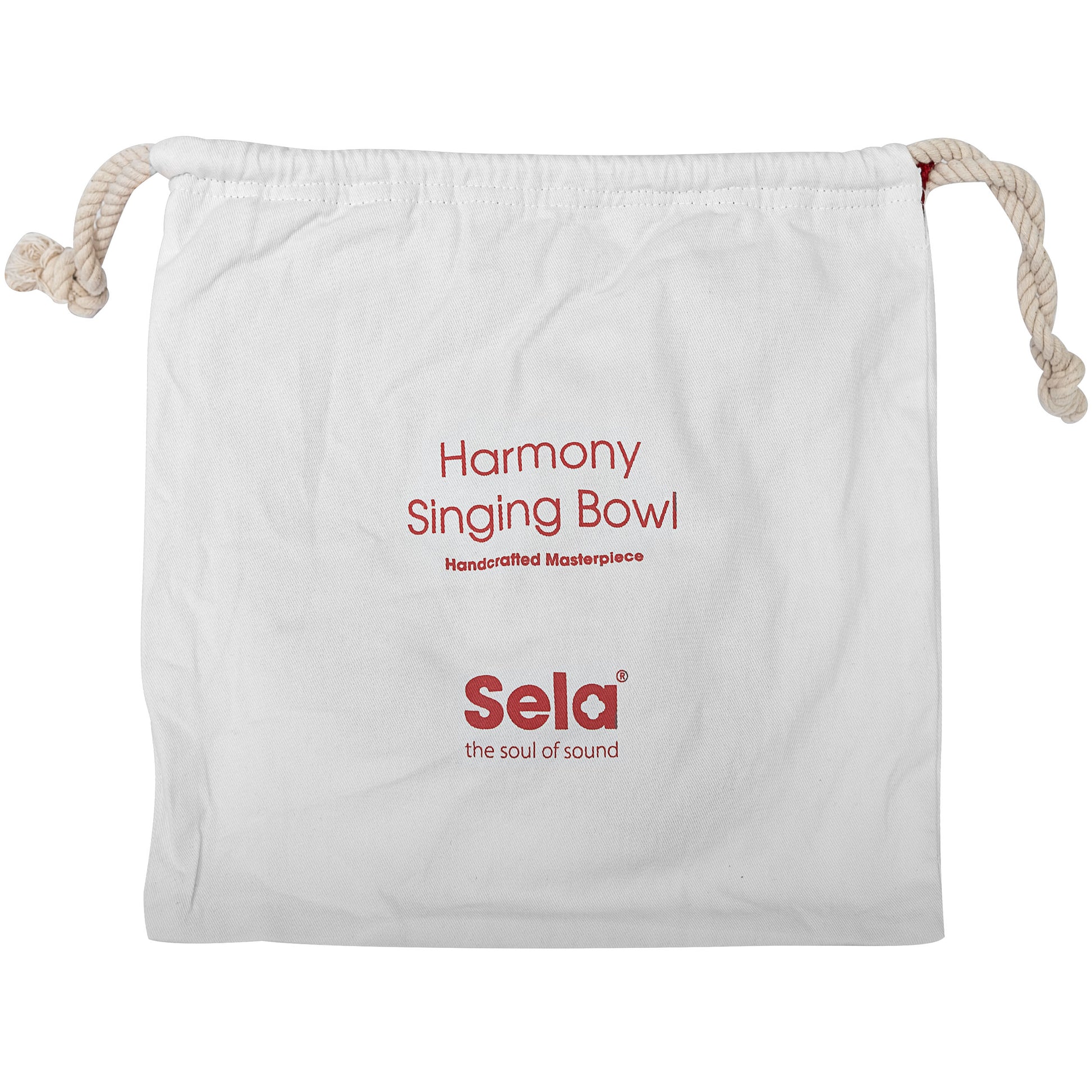 Jede Sela Harmony Singing Bowl wird mit einem nützlichen Zubehörset ausgeliefert. Der beiliegende Schlägel ist dabei besonders hervorzuheben, denn er stellt eine Kombination aus einem klassischem Filzklöppel und einem Reibholz dar. Die Klangschale kann demnach mit dem runden Filzkopf angespielt oder mit dem lederbezogenen Stiel sanft gerieben und zum Singen gebracht werden, wodurch sich der Klang des Instruments auf unterschiedliche Weise entfaltet. Eine Baumwolltasche mit Kordelzug und rotem Velourfutter schützt die Klangschale beim Transport, ein Filzring sorgt für einen sicheren Stand und optimales Schwingungsverhalten beim Anspielen der Sela Harmony Singing Bowl.