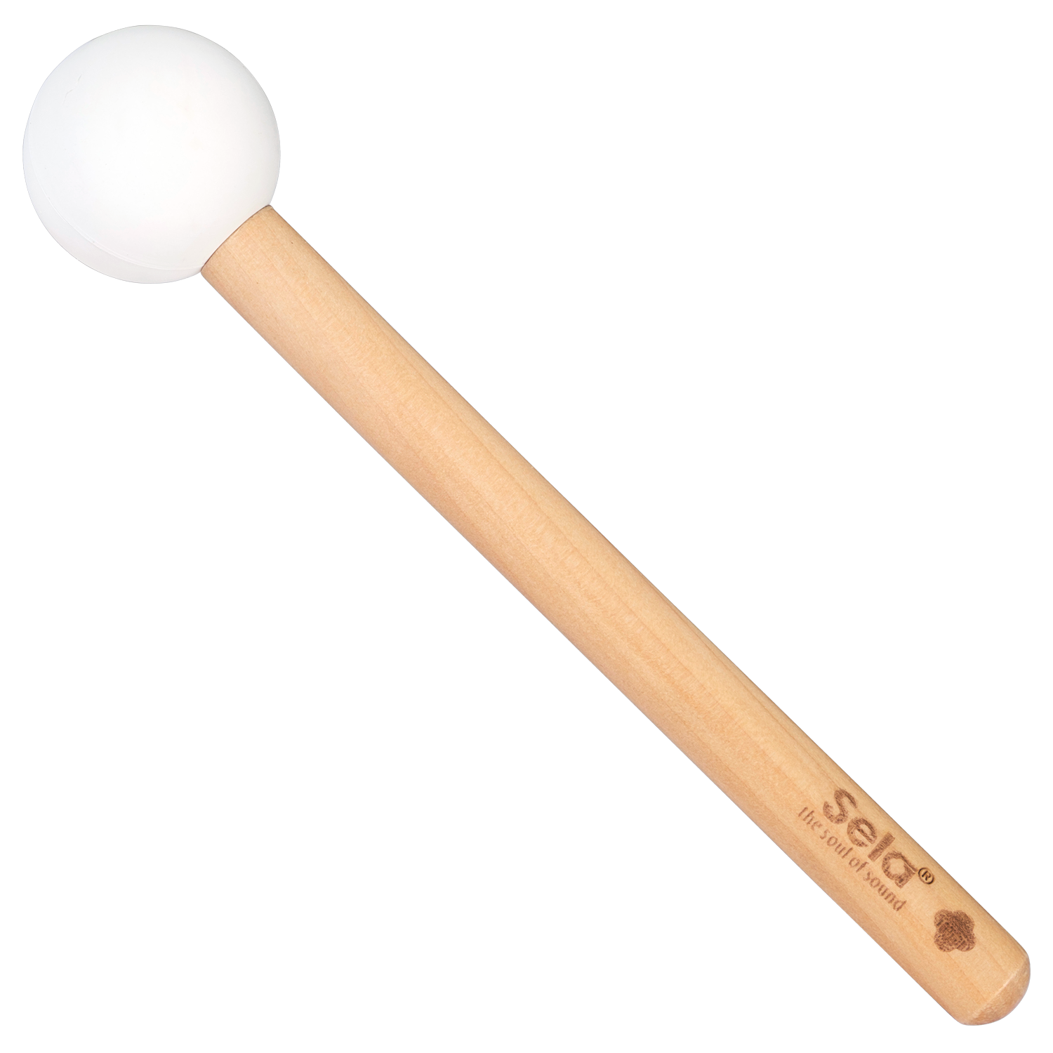 Der Sela Crystal Bowl Wooden Mallet ist ein kompakter Holzschlägel mit Gummikopf, der speziell zur Verwendung mit Kristallklangschalen entwickelt wurde. Der Griff ist aus südostasiatischem Schima-Holz gefertigt, welches der heimischen Buche ähnlich ist. Er besitzt eine Gesamtlänge von 21 cm und liegt hervorragend in der Hand. Der weiße, kugelförmige Kopf hat einen Durchmesser von etwa 4 cm.