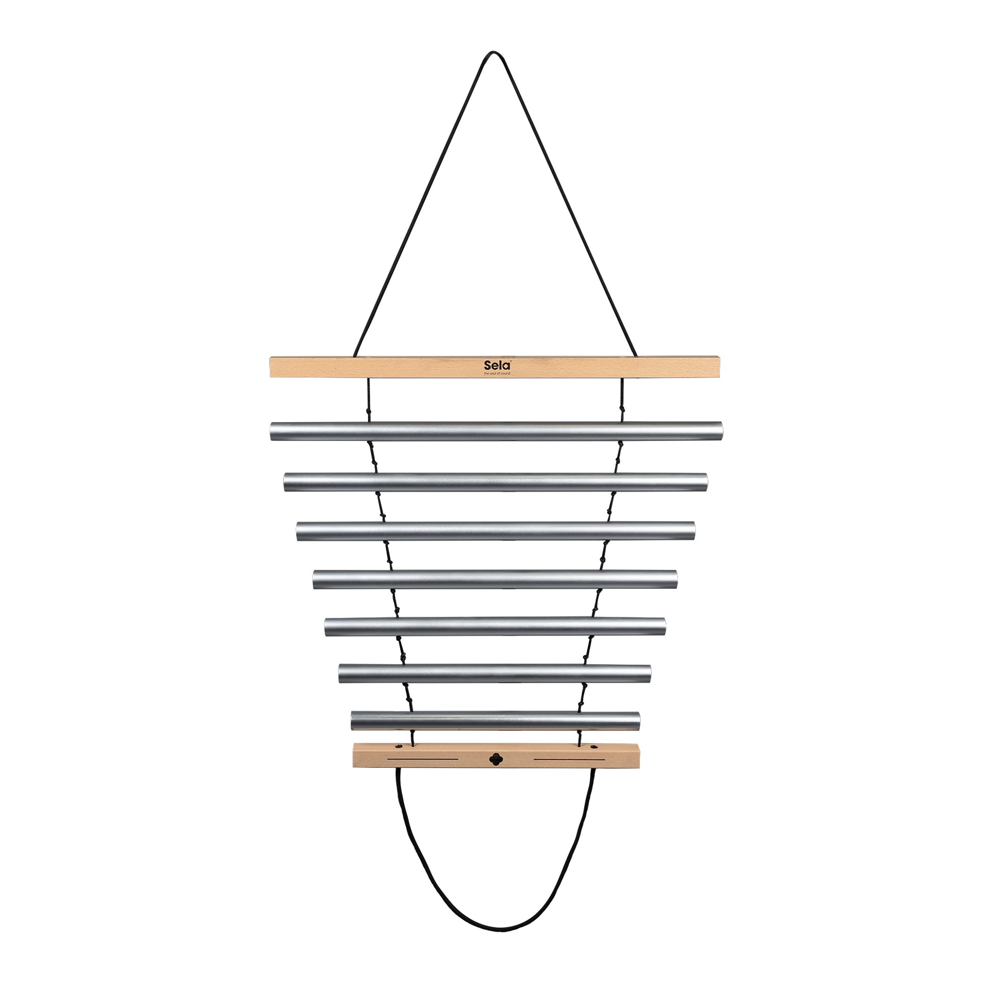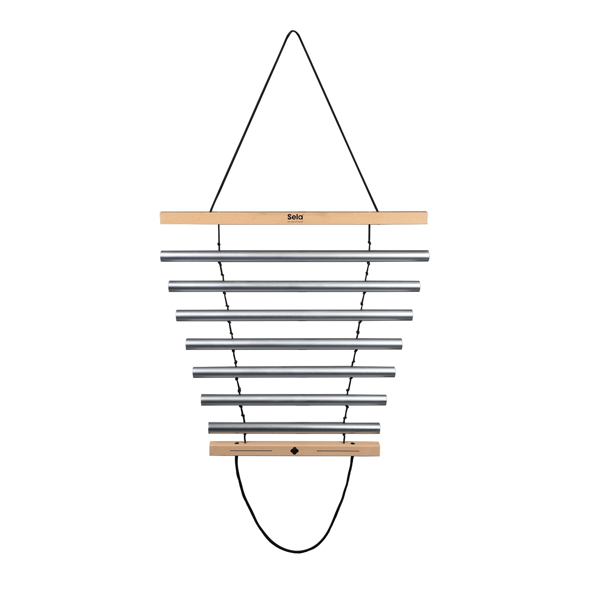 Sela Harmony Chimes erzeugen stimmungsvolle, beruhigende Klänge. Das handgehaltene Instrument besteht aus mehreren Aluminium-Klangröhren, die an reißfesten Nylonschnüren befestigt und von zwei Haltestäben aus Holz eingefasst sind. Gespielt werden die Sela Harmony Chimes mit dem beiliegenden Schlägel. Einmal in Schwingung versetzt, können sie auch sanft geschwungen, gedreht oder vorsichtig herumgewirbelt werden, um den ganzen Raum mit ihrem sanften Klang zu erfüllen.