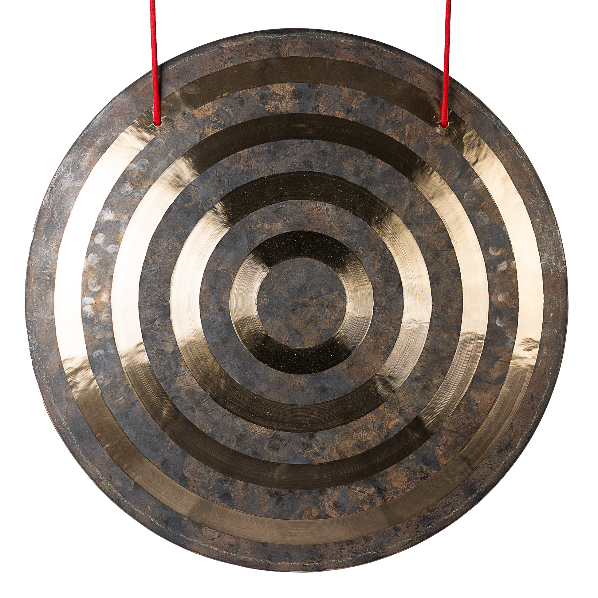 Die polierten, konzentrischen Ringe beeinflussen das Ansprechverhalten und die Obertonentwicklung auf subtile Weise, erhöhen Klarheit und Projektion und bewahren gleichzeitig den erdigen, komplexen Klangcharakter der unbehandelten Oberfläche. Sichtbare Hammerschläge und natürliche Patina bleiben erhalten und und sorgen für leichte Unterschiede in Optik und Klang.