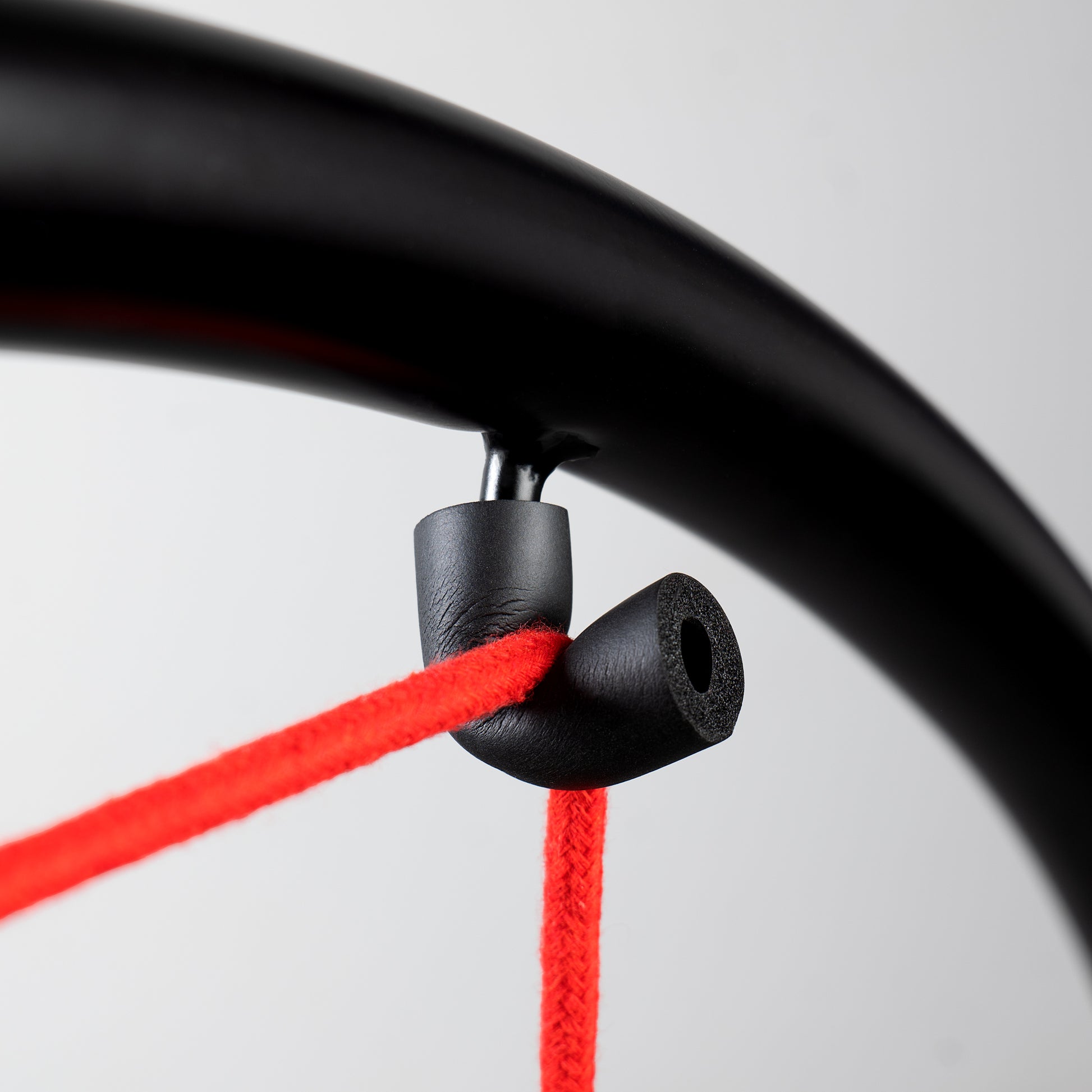 Stilvoll und elegant setzt der runde Rahmen den Gong in Szene und bietet ihm dabei stabilen Halt. Der Ständer aus schwarzem pulverbeschichtetem Stahl erlaubt dem Gong frei zu schwingen und sorgt so für ein umwerfendes Klangerlebnis. Durch seine kompakte Größe können Gongs mit diesem Ständer sowohl auf dem Tisch als auch auf dem Boden gespielt werden. Die Haken zum Einhängen des Gongs sind nochmal extra mit einem weichen Schaumstoff gepolstert und an den Füßen befinden sich schonende Kunststoffeinsätze, die verhindern, dass der Gongständer Tisch oder Boden beschädigt.