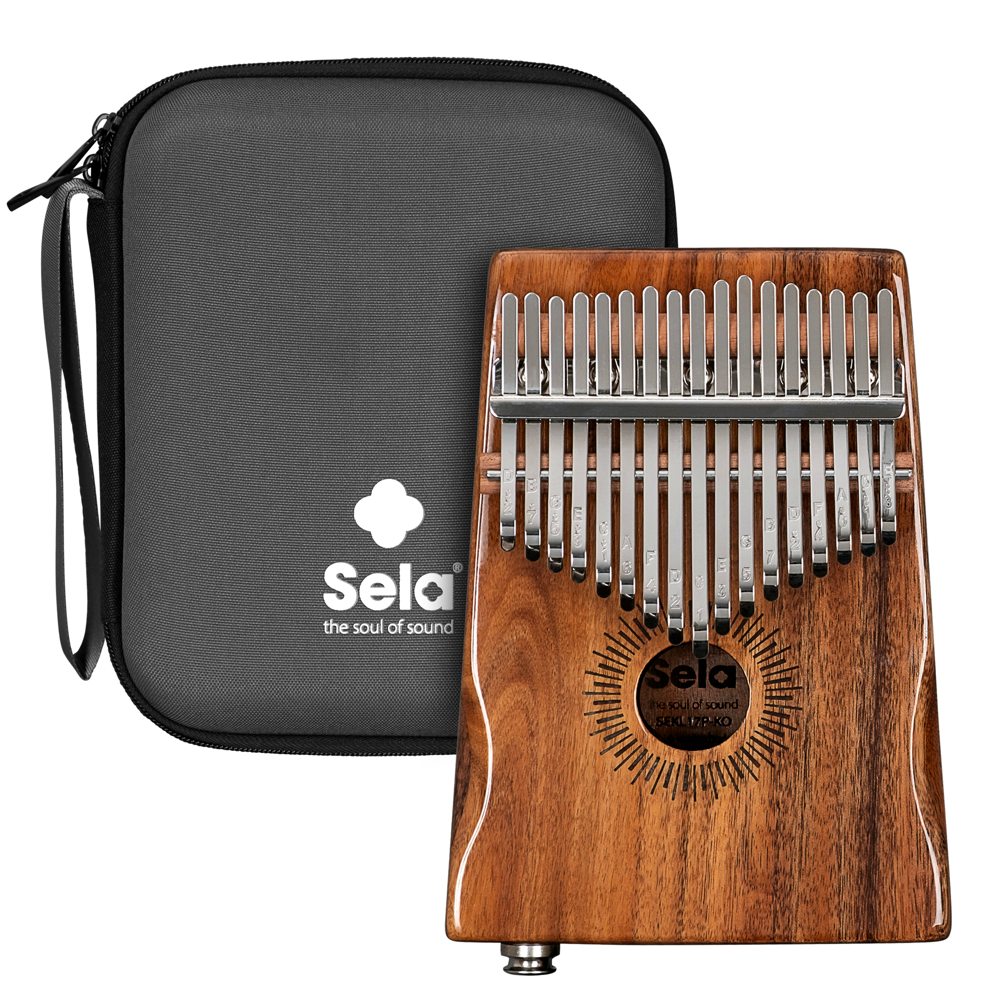 Die Sela Kalimba 17 Hollow besitzt einen hohlen Korpus aus feinem Koa-Holz. Koa ist eine seltene Akazienart, die nur auf Hawaii wächst und aufgrund ihres ausgewogenen Klangs häufig für den Bau von Instrumenten eingesetzt wird. Wie bei einer Gitarre oder Ukulele sorgt der hohle Korpus mit Resonanzloch für einen kräftigen Klang. Zudem besitzt dieses Modell einen Tonabnehmer, über den die Kalimba für Live-Auftritte an eine PA-Anlage oder für Recordings an ein Aufnahmegerät angeschlossen werden kann.