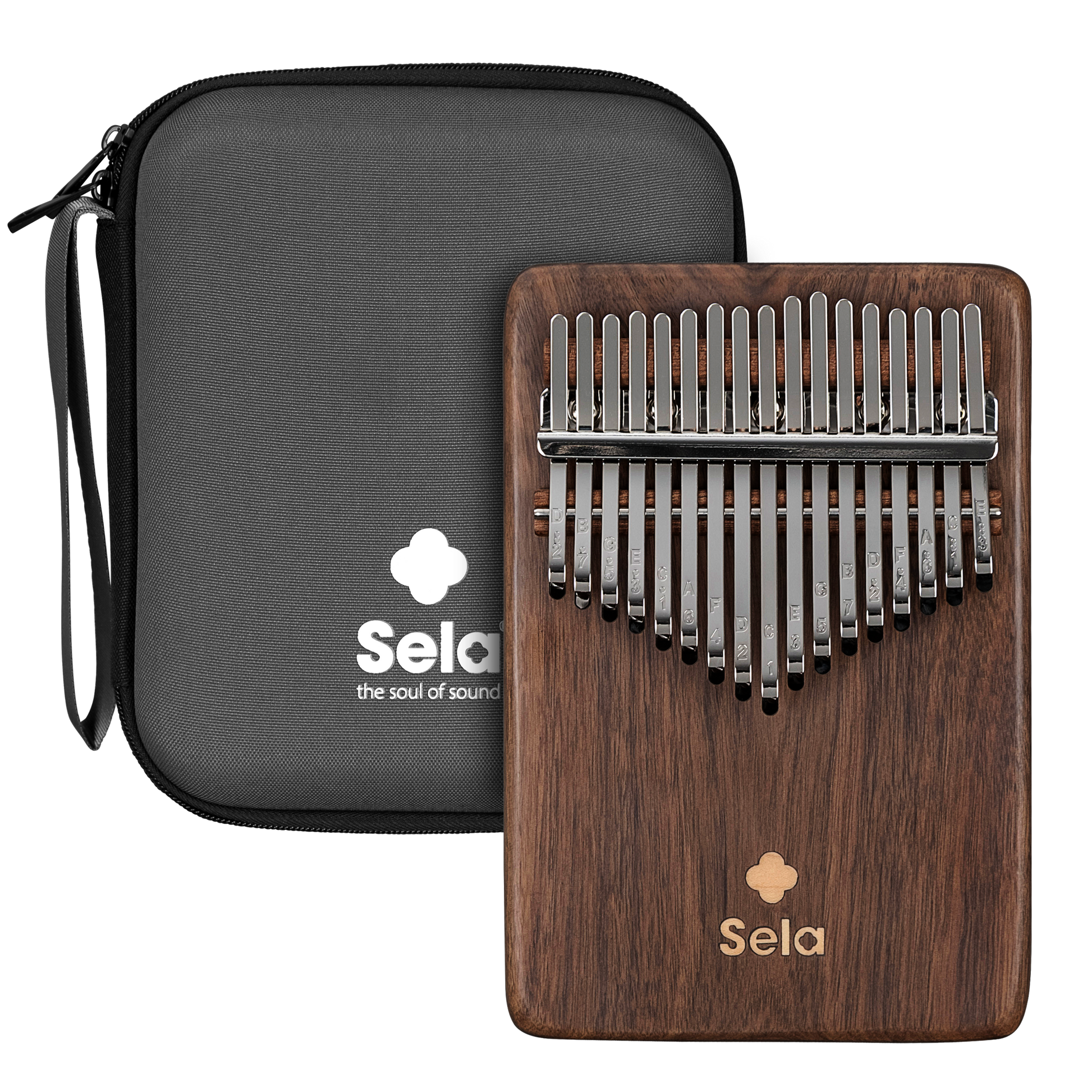 Die Sela Kalimba 17 Black Walnut besitzt einen massiven Korpus aus schwarzem Walnussholz. Das sehr dunkle, fein gemaserte Holz sorgt in Verbindung mit der geradlinigen Form des Instruments für einen edlen, eleganten Look. Zudem besitzt Walnussholz hervorragende klangliche Eigenschaften mit dezenten Bässen, kräftigen Mitten und klarem Höhen.