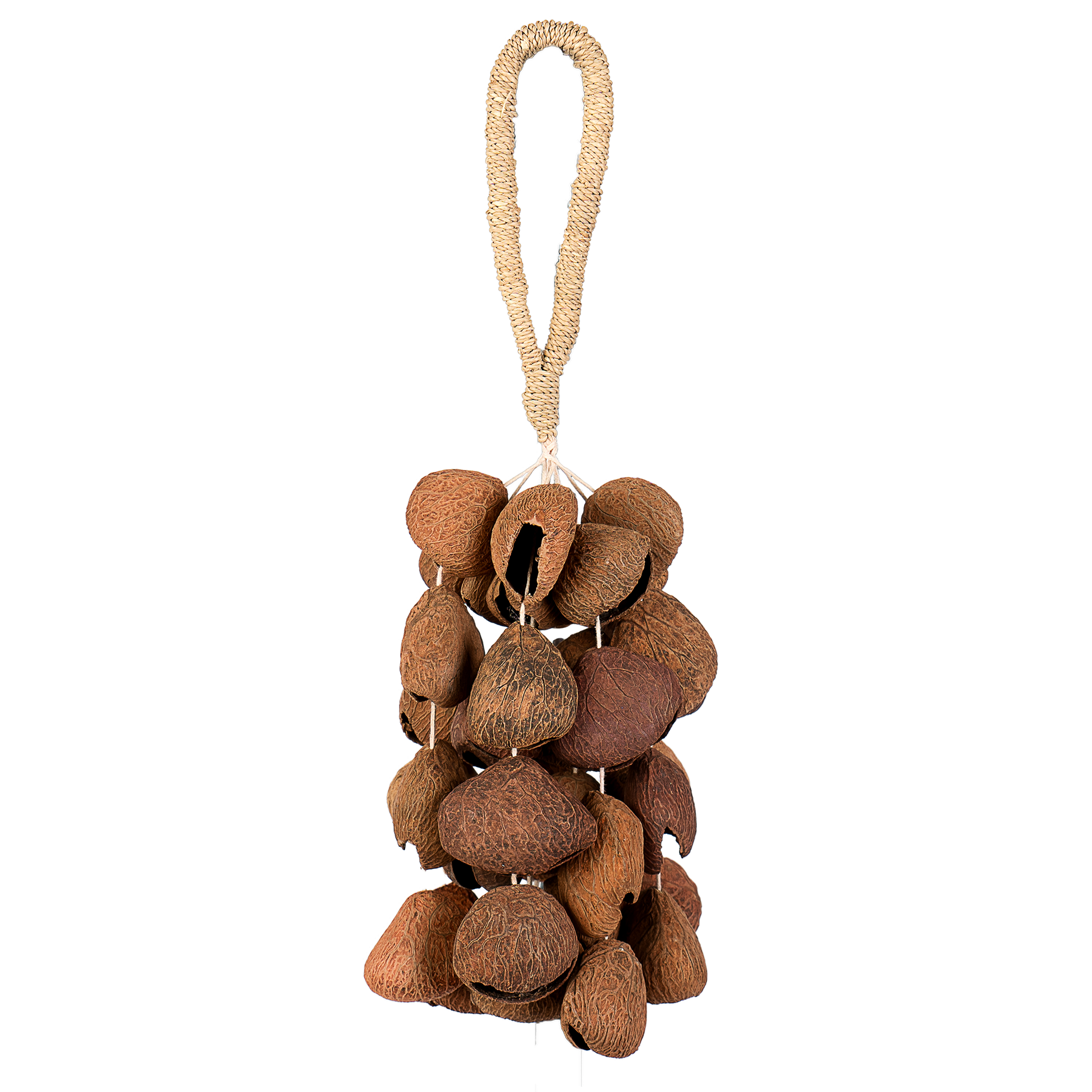 Die Pangi-Schalen werden nach der Reinigung ausgehöhlt und besitzen eine natürlich resonante Struktur, die es den Samen ermöglicht, einen strukturierten, tieferen Ton mit sanft-ätherischem Charakter zu erzeugen.