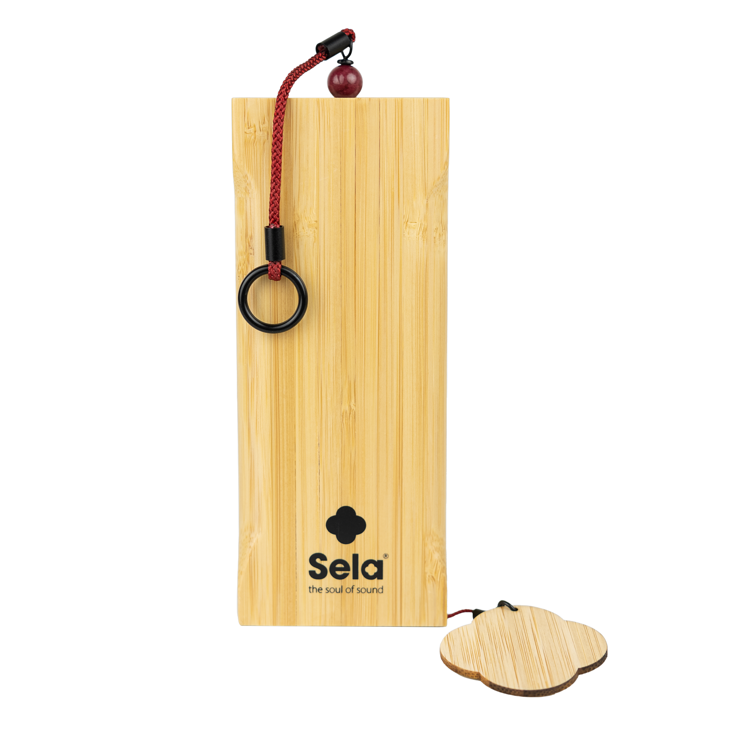 Sela Venti Chimes sind hochwertig verarbeitete Windspiele, die in unterschiedlichen Stimmungen erhältlich sind. Sie bestehen aus einem rechteckigen Bambusgehäuse, in dessen Inneren kreisförmig 8 Tonstäbe aus Metall angeordnet sind. Angeschlagen werden die Tonstäbe durch eine Kunststoffscheibe, die an einer Kordel befestigt ist. Am unteren Ende dieser Kordel ist ein Holzplättchen angebracht, welches sich im Wind bewegt und dadurch das Venti Chime erklingen lässt. Natürlich kann man das Instrument auch aktiv spielen, indem man es an seiner Aufhängung oder am Korpus greift und sanft in verschiedene Richtungen bewegt.