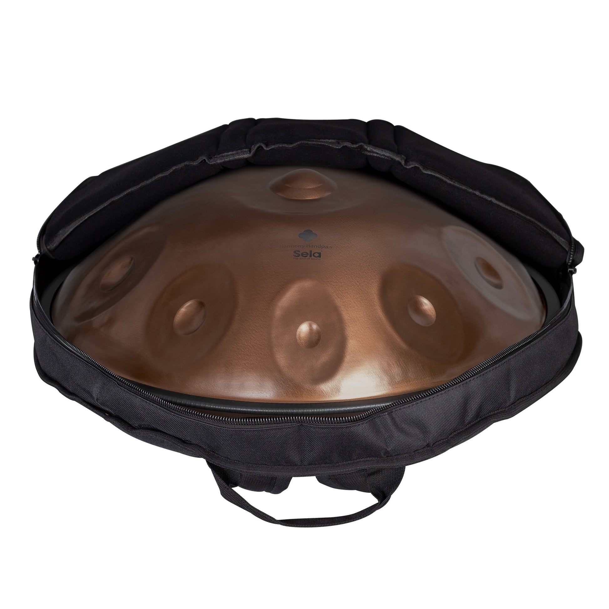 Each Sela Handpan comes with a bag made of tear-resistant nylon fabric, which provides optimal protection during transport thanks to its good lining. It can be carried either by hand using the two handles or comfortably as a backpack thanks to adjustable shoulder straps. A practical outer compartment offers enough space for small accessories such as a metronome.