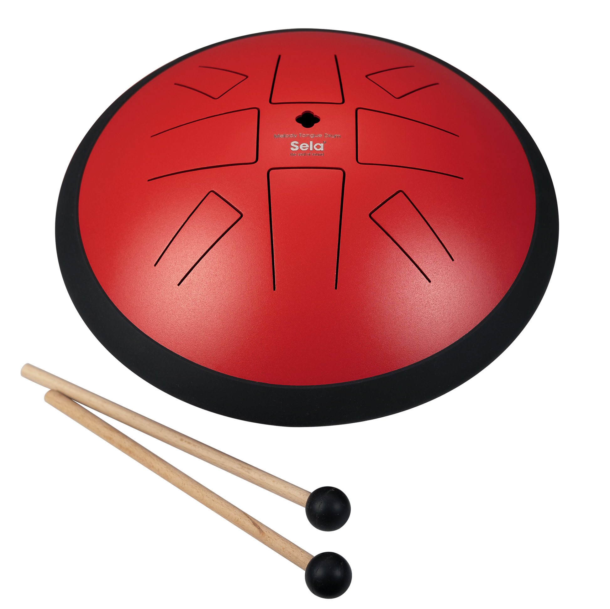 The Melody Tongue Drum 10" C Pygmy Red is a handy steel tongue drum with a diameter of about 25 centimeters. With its warm and soothing sound, it is suitable for relaxation in everyday life as well as for the early musical education of children. The eight tone fields of the Sela Melody Tongue Drum 10" C Pygmy Red lie on the Pygmy scale. This creates harmonic sounds that enchant listeners when playing this tongue drum.