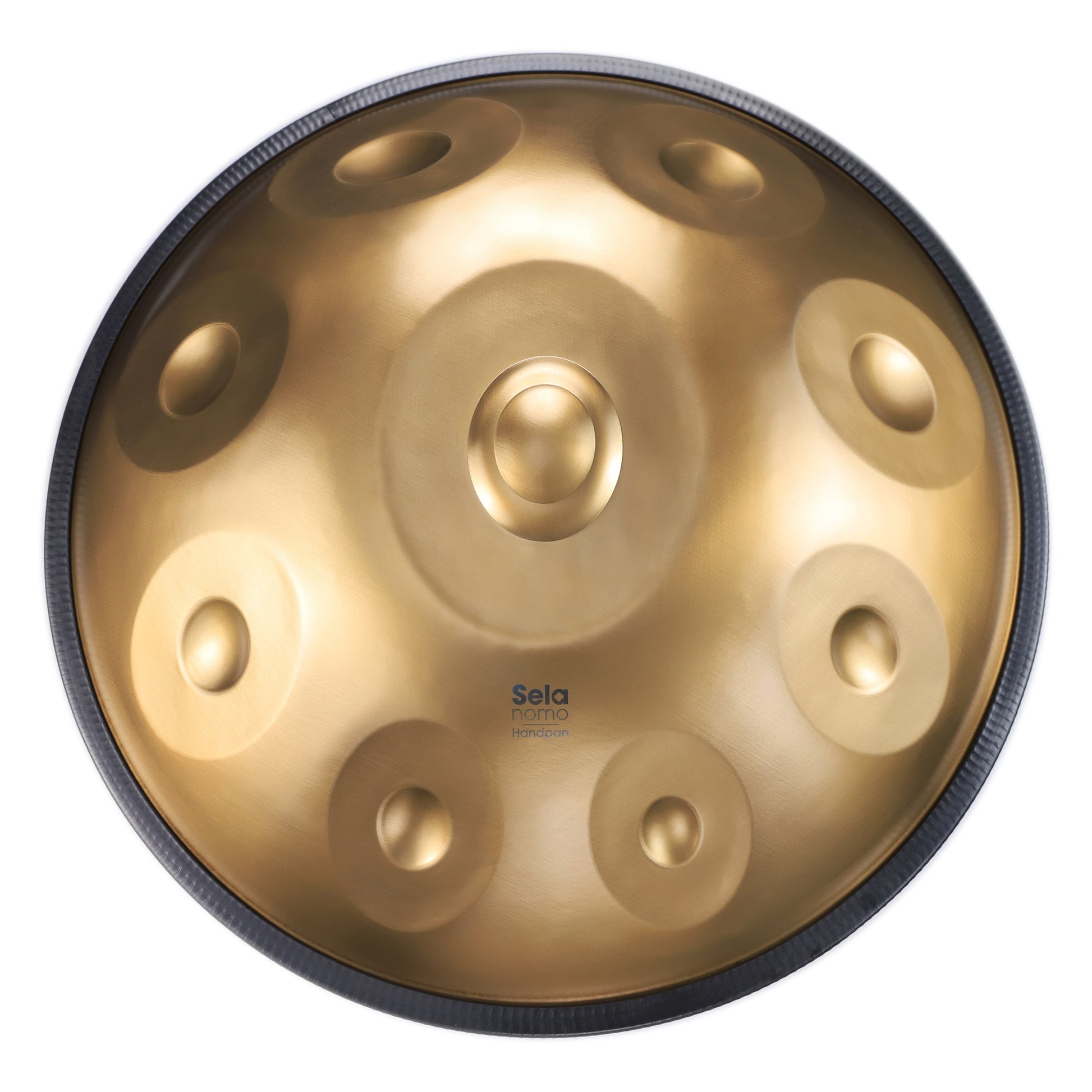 The Sela Nomo Handpan offers a particularly affordable entry into the world of handpans and is designed for anyone looking to gain their first experience with this unique instrument. Sound quality and playability meet Sela’s well-known standards. To achieve its attractive price point, the Nomo Handpan is produced using a more machine-assisted manufacturing process. The stainless steel alloy used is durable, easy to maintain, and provides a well-balanced sustain—ideal for relaxed, intuitive playing.Thanks to its sensitive response, the Nomo Handpan is easy to play and forgiving of less experienced technique. The matte gold finish gives the instrument a subtle, high-quality appearance.