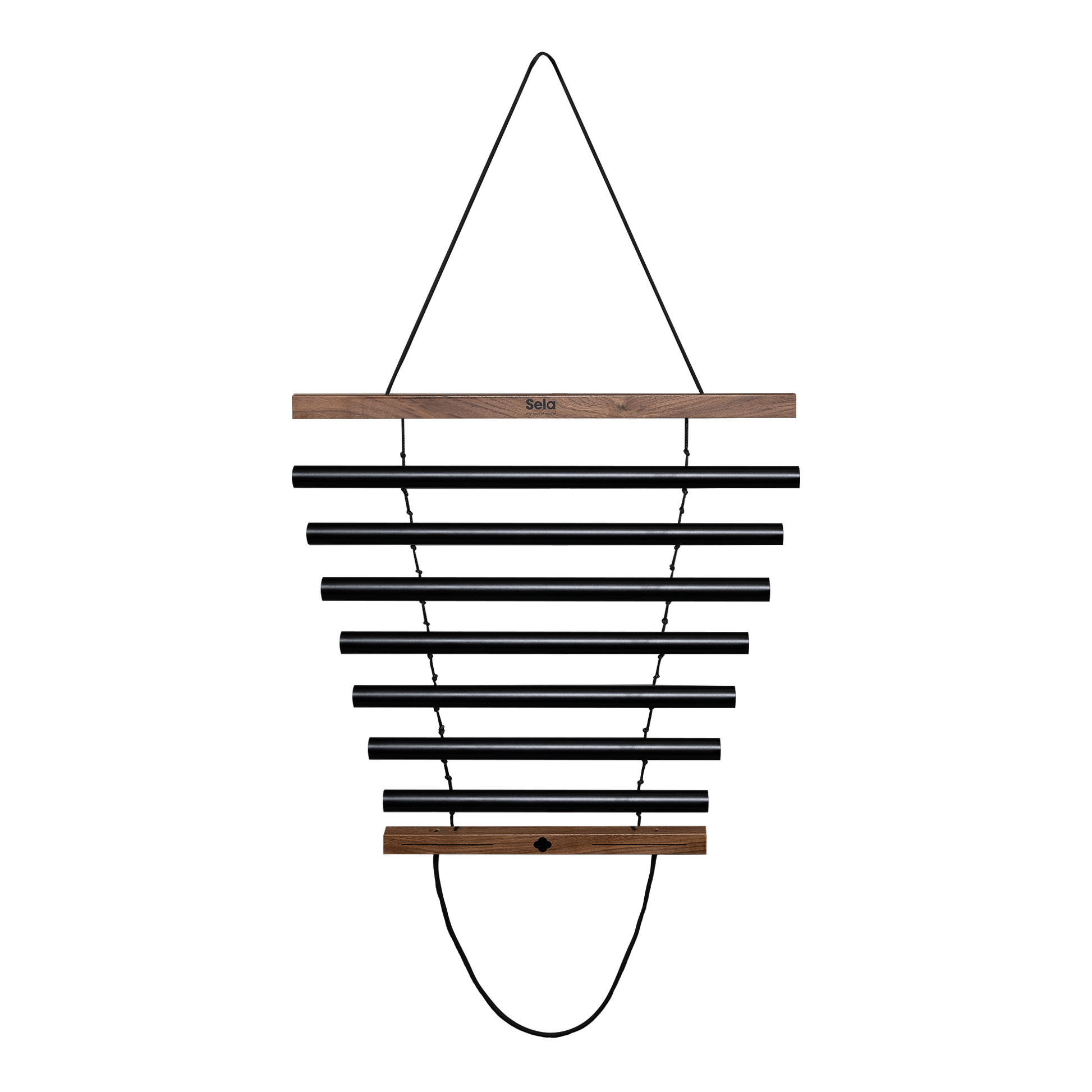 Sela Harmony Chimes are available with a choice of seven or nine tones and with walnut or beech wood. In the walnut models, the sound tubes are anodized black for a particularly mysterious, elegant look, while the bars of the more classic and discreet beech wood version are silver-coloured. The Sela Harmony Chimes come with a padded carrying bag, a soft velvet insert for wrapping the chimes and the mallet, which has a beechwood handle and a soft wool head.