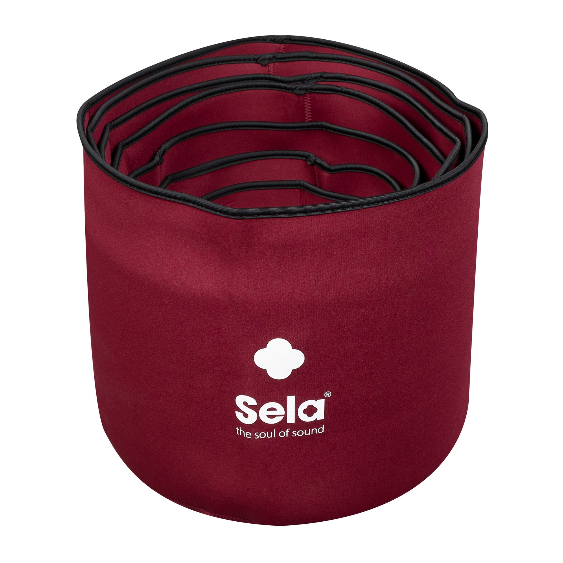 The Sela Crystal Singing Bowl Sleeve Set consists of 7 wine red neoprene protective sleeves. These sleeves are a perfect complement to your precious crystal singing bowls.