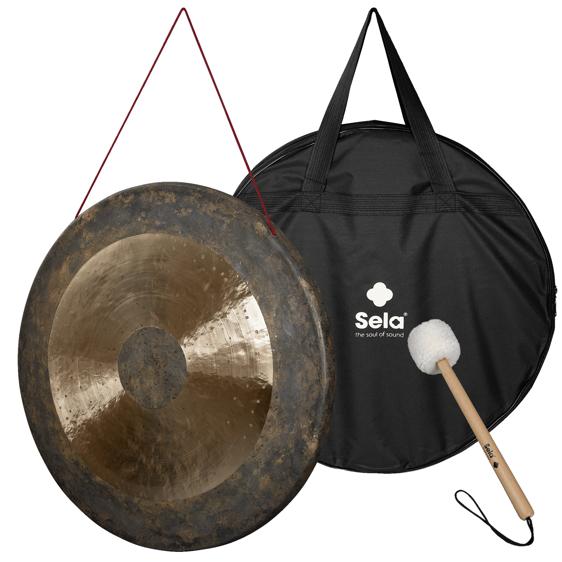 The Sela Chau gongs are real masterpieces, handmade in China from a special bronze alloy. They are available in sizes of 20, 24, 28, 32 and 36 inches. The larger the model, the deeper and also more voluminous the sound when struck. Included with each model is a maple mallet with a plastic head with velvet cover and a zippered carrying case.