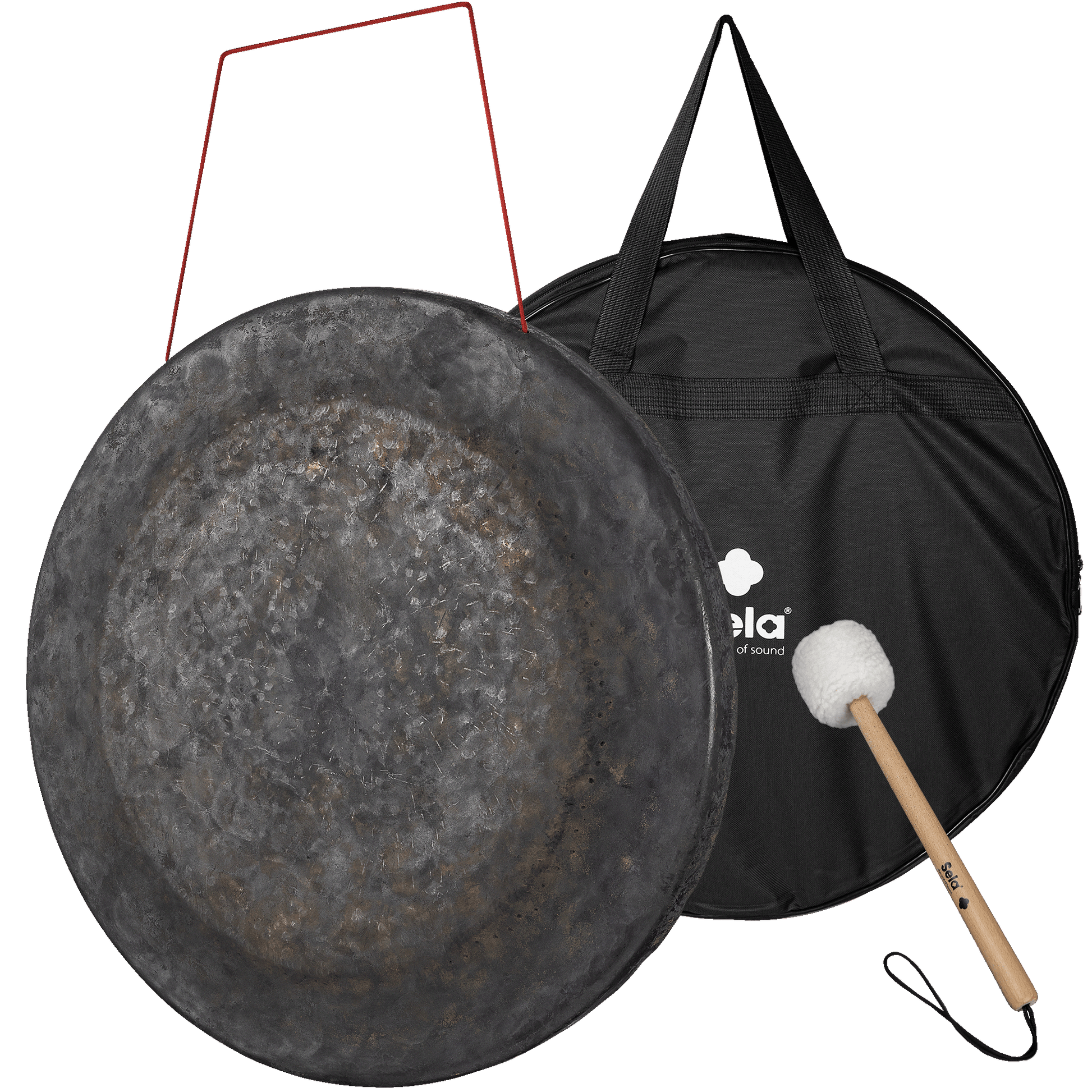 The Sela Chau gongs are genuine masterpieces that are made by hand in China from a special bronze alloy. Chau gongs have a traditional shape with a rim bent backwards and are available in sizes of 20, 24, 28, 32 and 36 inches. The larger the diameter, the deeper and more voluminous the sound when struck. Each model comes with a beech mallet with a fleece-covered head and a practical zippered carrying bag.