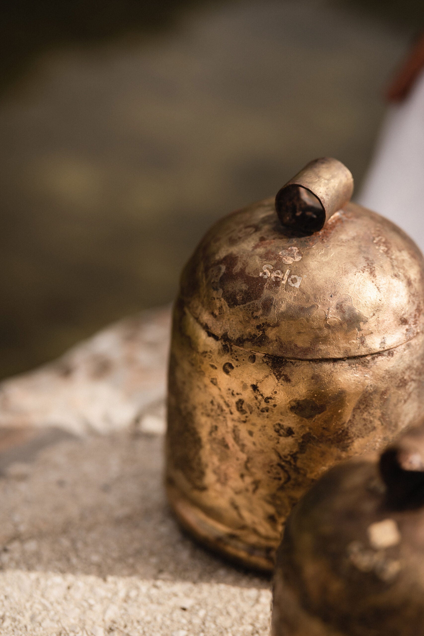 The bells are formed by skilled artisans from sheets of iron and coated with molten brass. Each bell undergoes a deliberate aging process on its outer surface. This process creates a unique look that reflects the passing of time. Beyond its physical form, the Noah Bell is a timeless symbol that connects people to India's rich cultural heritage and offers a deep connection to history and spirituality.